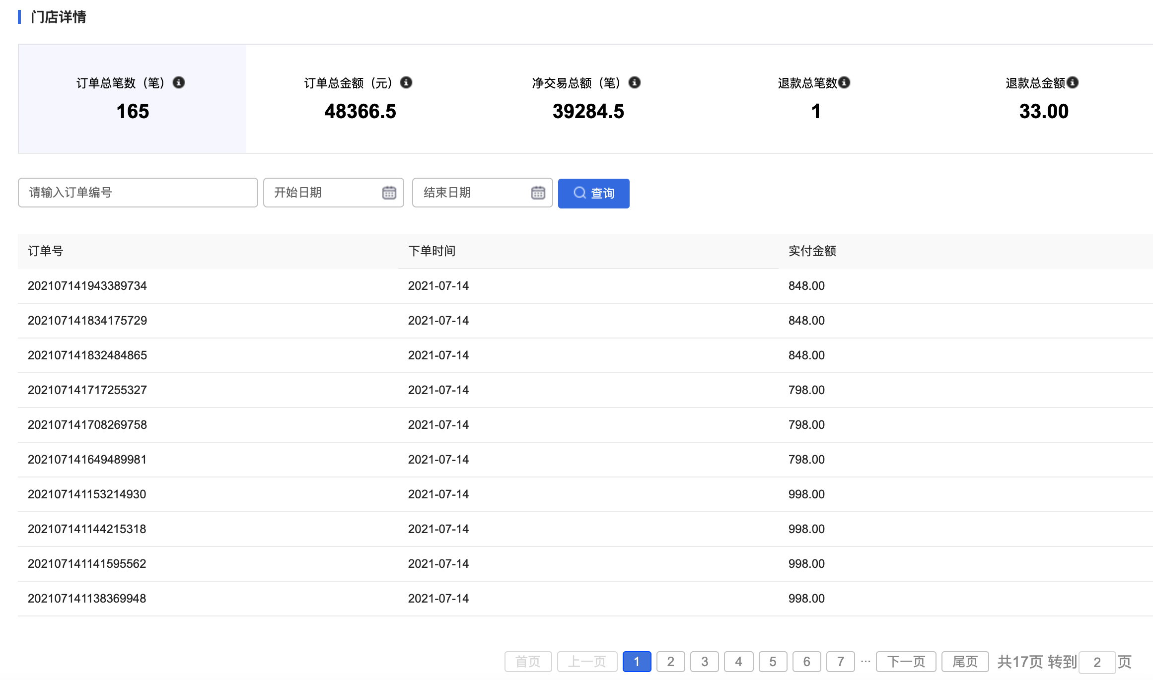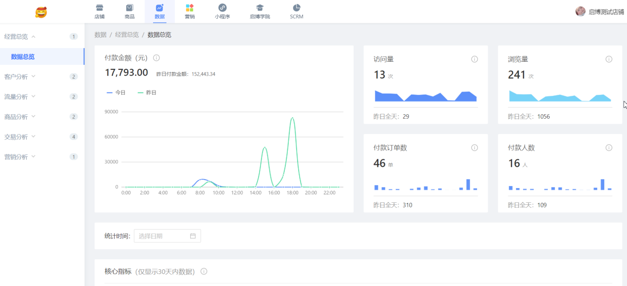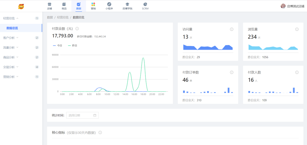 用戶場景:新增門店訂單筆數、訂單金額等數據統計,方便商家核對統計門店數據