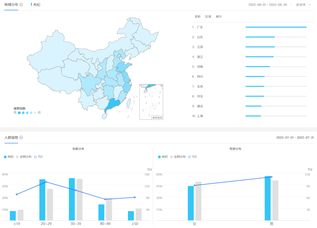 根據百度指數,早康的核心人群集中在華東、華南及部分華北地區,消費群體年齡層大致集中在20-29歲以及30-39歲的男性。