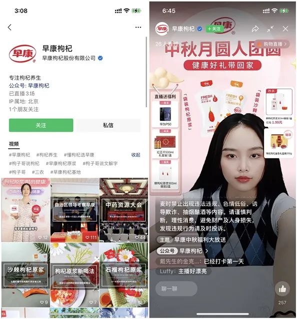 短期其實可以優化品牌介紹、功能區關聯小程序,并在內容和標簽上可以重新調整,增加一些故事性的內容,軟性植入品牌,還有枸杞的知識分享也可以結合季節去產出等,視頻號直播有直播過3場,可以與企微打通,并結合社群拉動用戶付費復購。