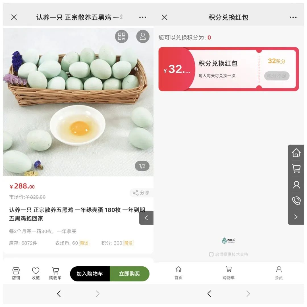 比如,拿認(rèn)養(yǎng)一只雞微商城的會(huì)員積分體系來說,它的商業(yè)模式存在兩種模式: