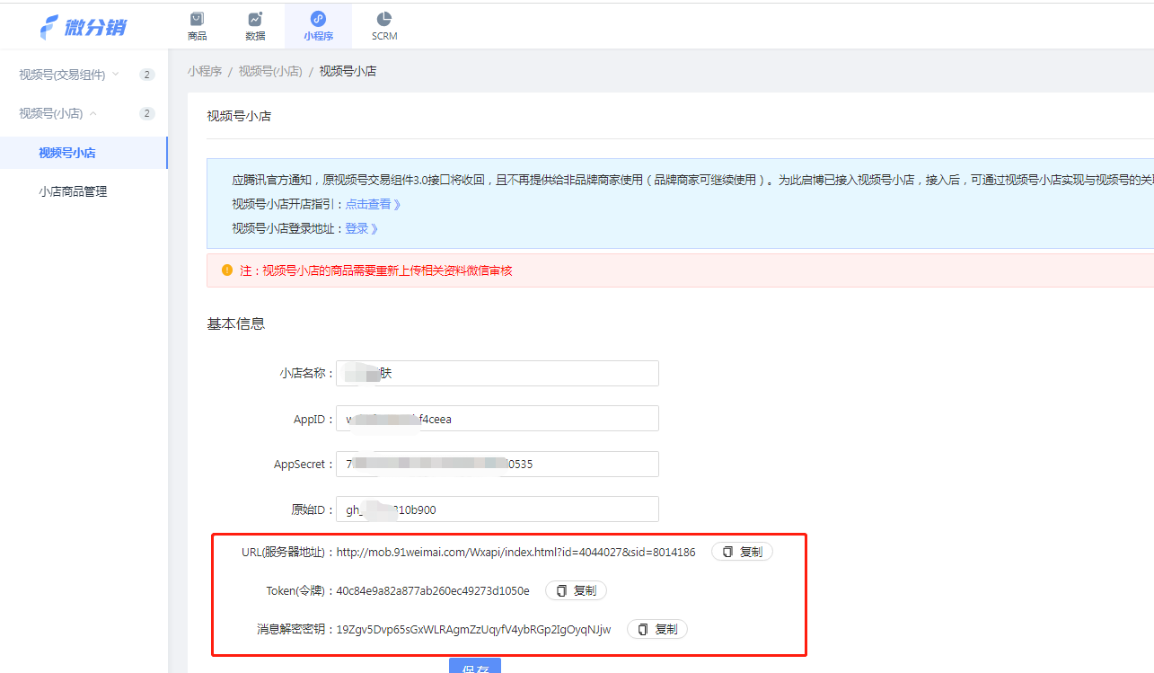 消息推送的內容在下方獲取,保存在視頻號小店后臺即可
