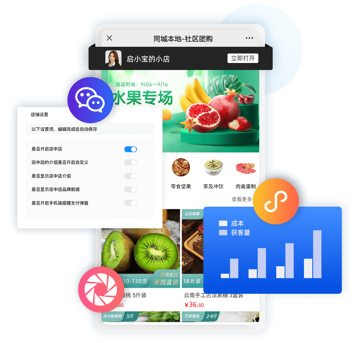 店中店,快速全渠道裂變公眾號+小程序+微商城+朋友圈,快速分享裂變,以一店裂變萬店,