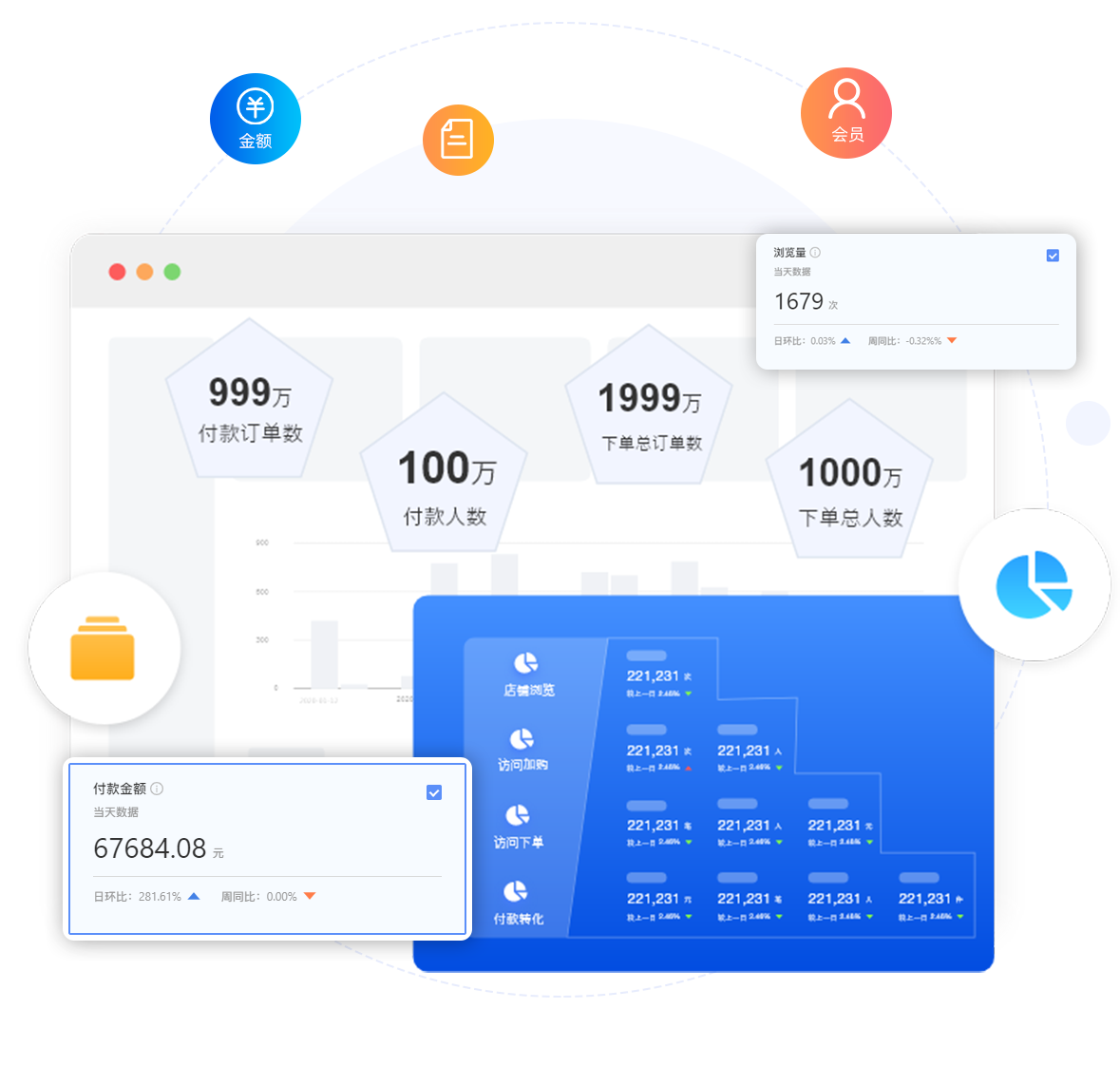 交易數據從下單人數、金額、次數、地域等全方位分析店鋪經營情況,用數據促