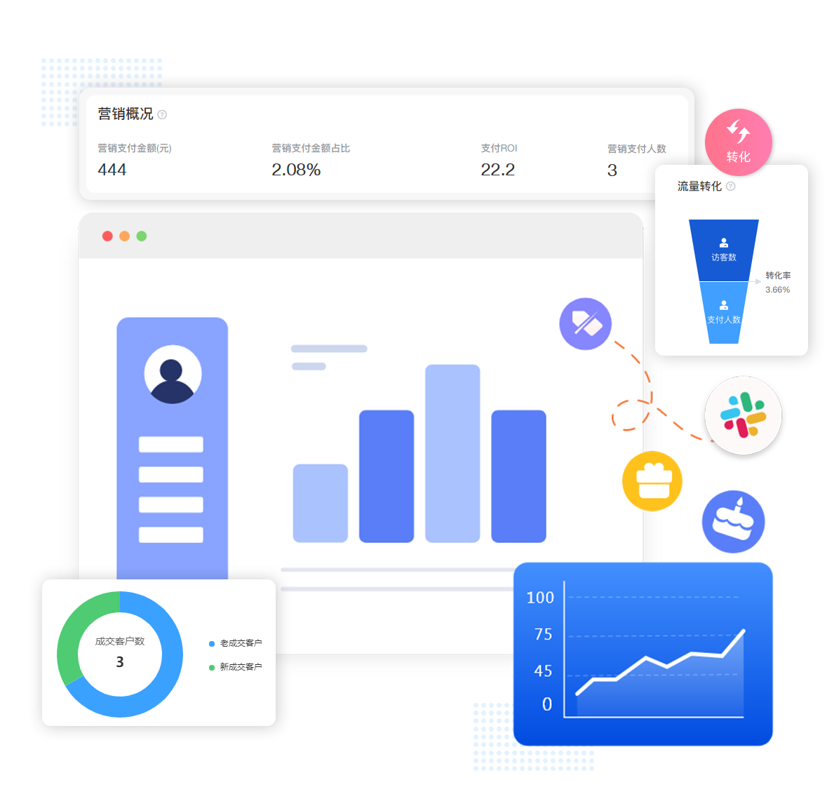 營銷數據對各種營銷策略活動數據進行大數據分析,不斷復盤活動效果,驅動營